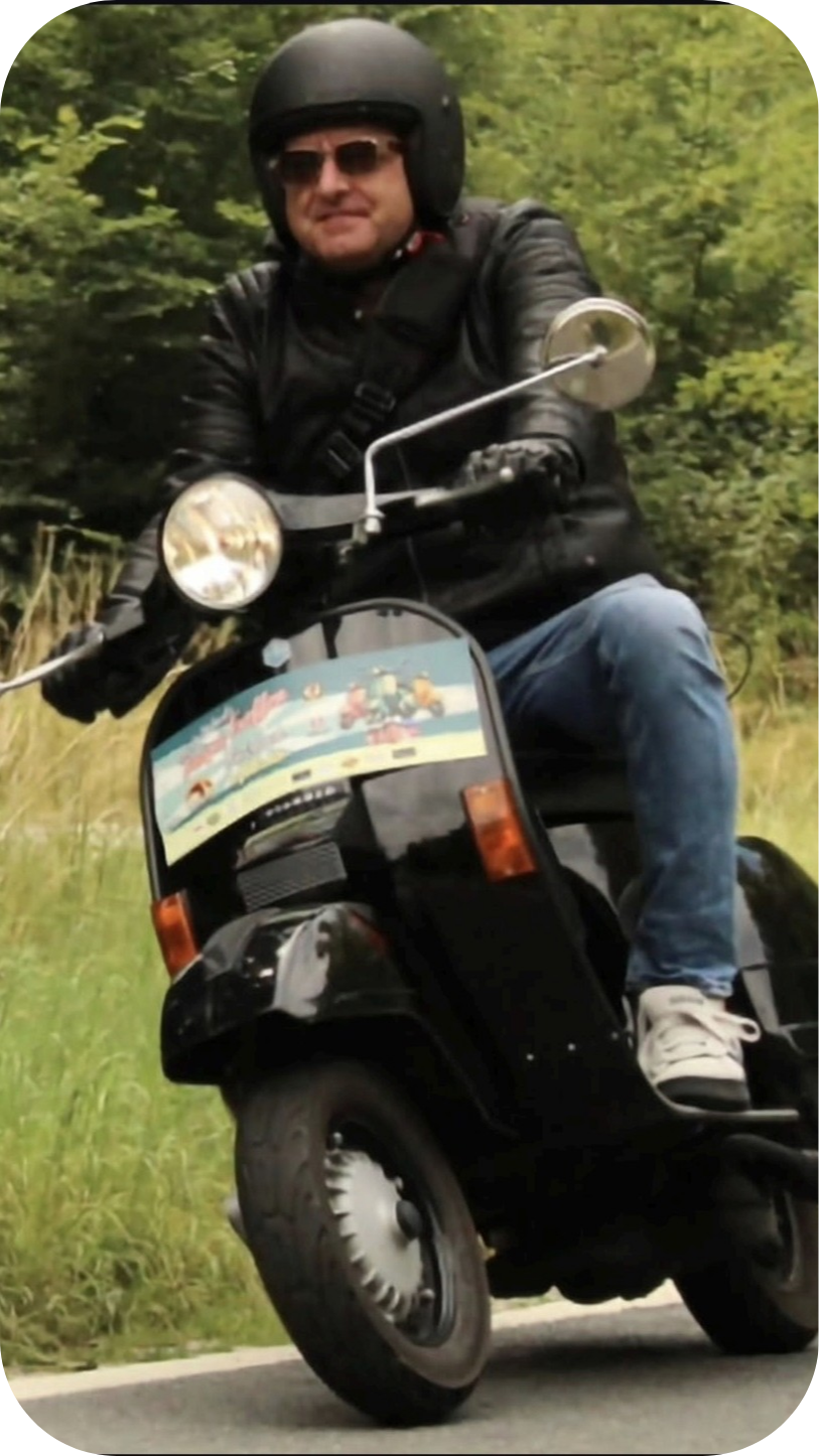 Im Sommer 2025 ist es genau 40 Jahre her, dass mich das Vespa-Fieber erwischt hat. Damals war ich auf einem unserer vielen Südtirol-Urlaube mit einem etwa gleichaltrigen Jungen befreundet, der eine blaue Vespa V50 besaß und mich damit meine ersten Fahrversuche unternehmen ließ. Vom ersten Moment an war es um mich geschehen: Während meine Schulkameraden von teuren Sportwagen schwärmten, träumte ich von nun an von einer eigenen Vespa. Erst einige Jahre später kaufte ich mir während meines Studiums meine erste Vespa – eine ebenso blaue V50 wie jene in Südtirol. Leider erwies sich der Roller schon bald als marode, sodass ich sie im Jahre 2013 schweren Herzens wieder verkaufte. Das Vespa-Virus ließ mich jedoch nicht los, und so kaufte ich mir 2018 eine neue Vespa Primavera 50. 2023 habe ich dann schließlich meinen B196-Führerschein gemacht, und seit Januar 2025 bin ich nun der stolze Besitzer einer Vespa GTS Super, mit der ich hoffentlich viele schöne und erlebnisreiche Touren gemeinsam mit netten Menschen machen werde.