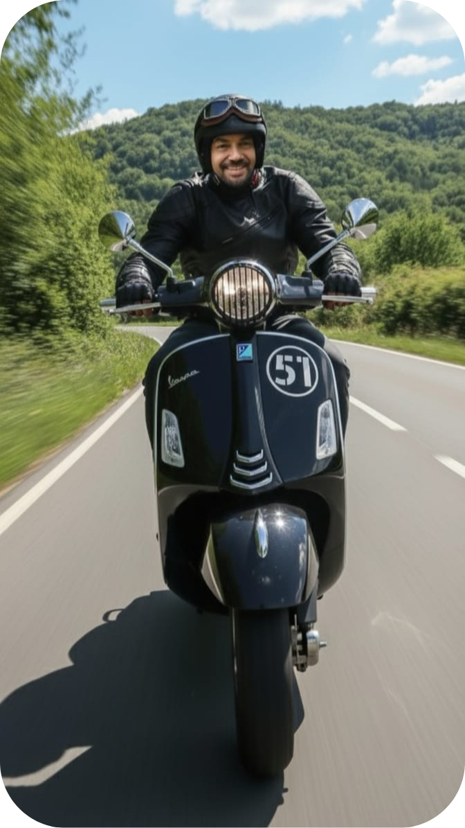 Es gibt nichts, was sich besser anfühlt, als den Wind zu spüren, die Straße unter den Rädern zu hören und zu wissen, dass das nächste Abenteuer nur eine Kurve entfernt ist. Vespa fahren ist für mich mehr als nur ein Hobby – es ist pure Lebensfreude!