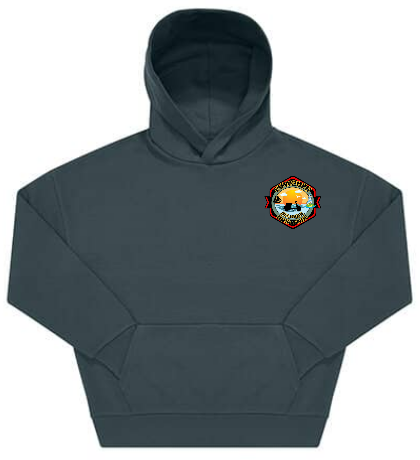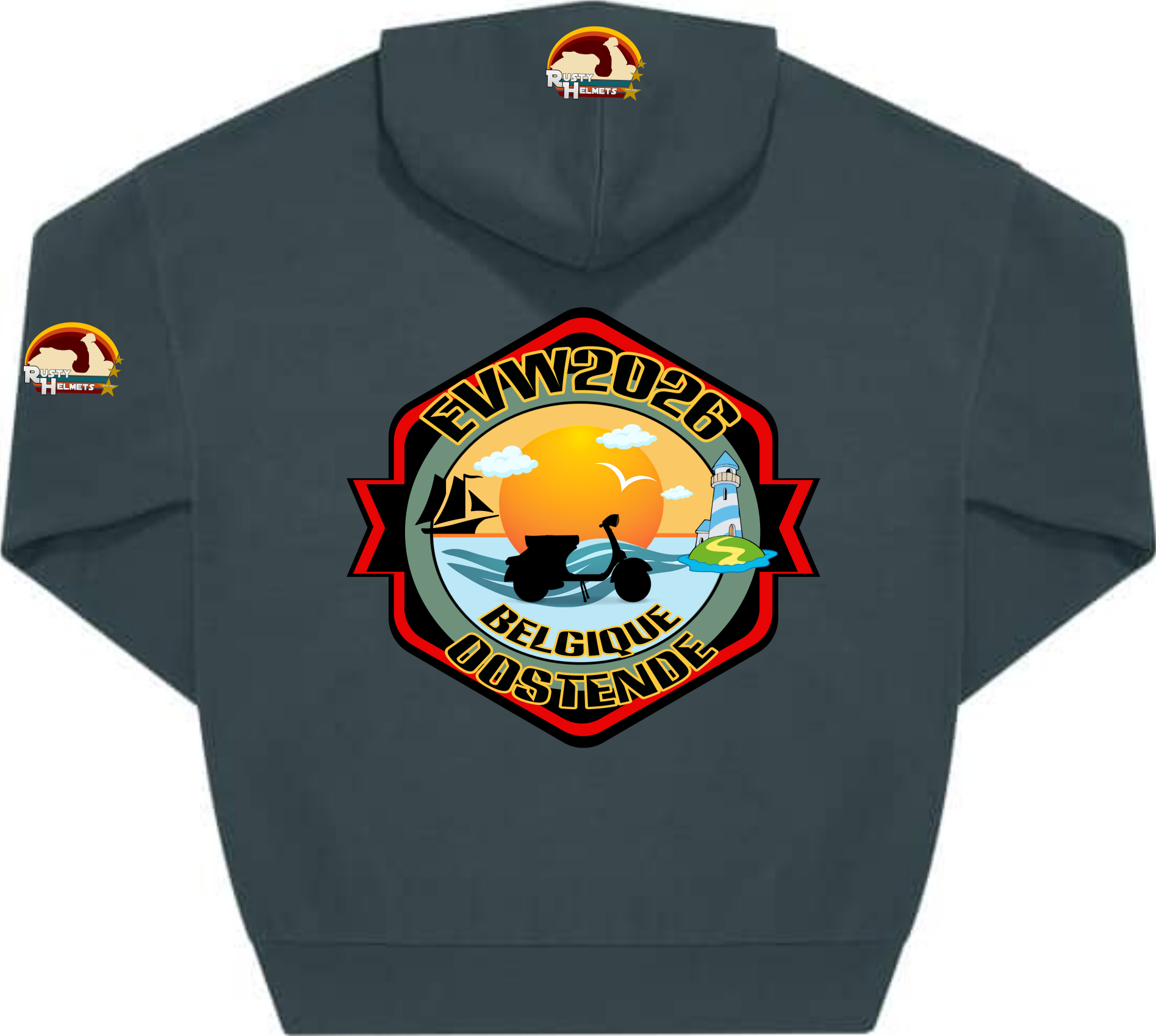 Hoodie EVW 2026 mit Event-Druck, vorne, hinten, Kapuzen und Ärmel, Farbe Petrol