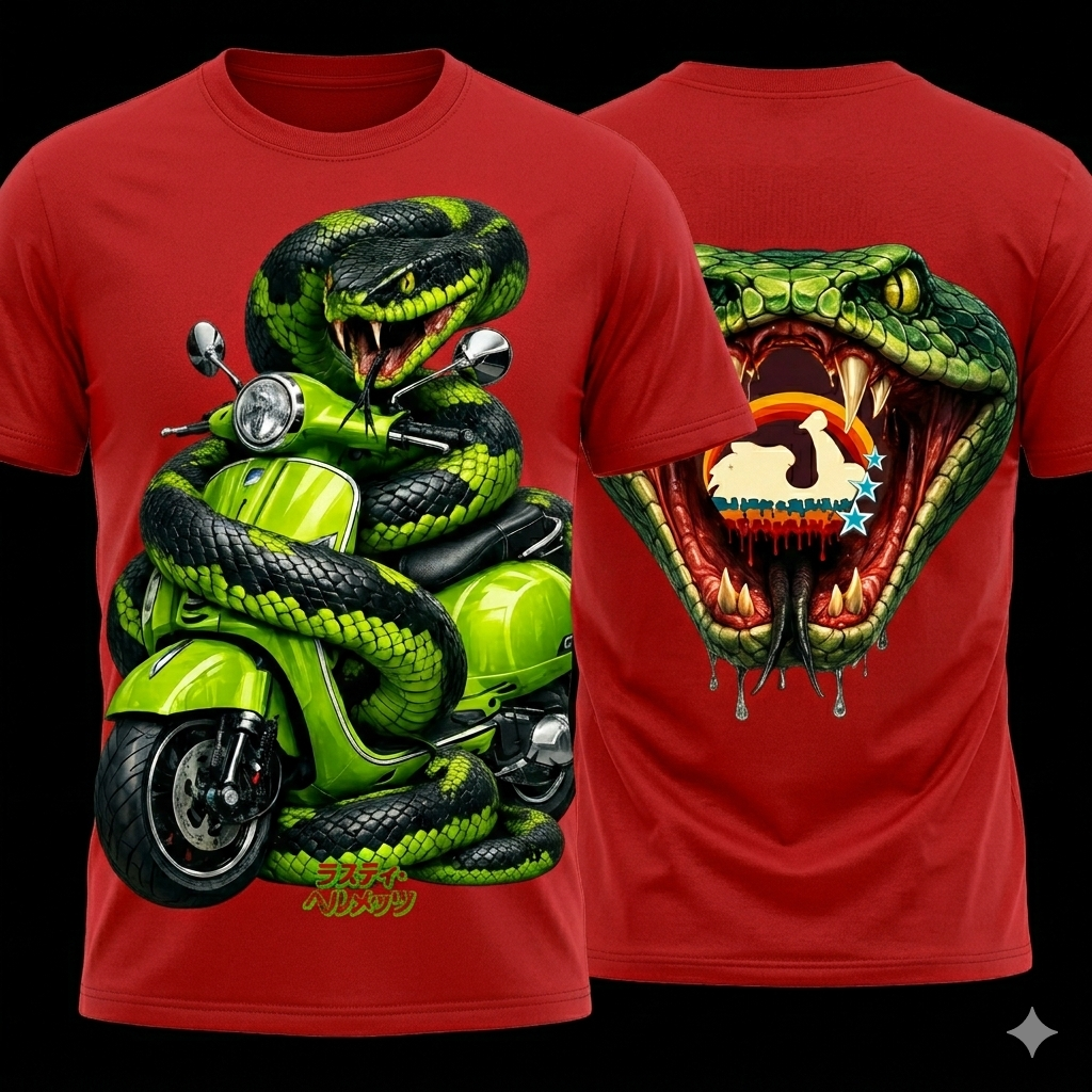 Rusty Helmets Snake 02 Textildruck – Verschiedene Größen wählbar