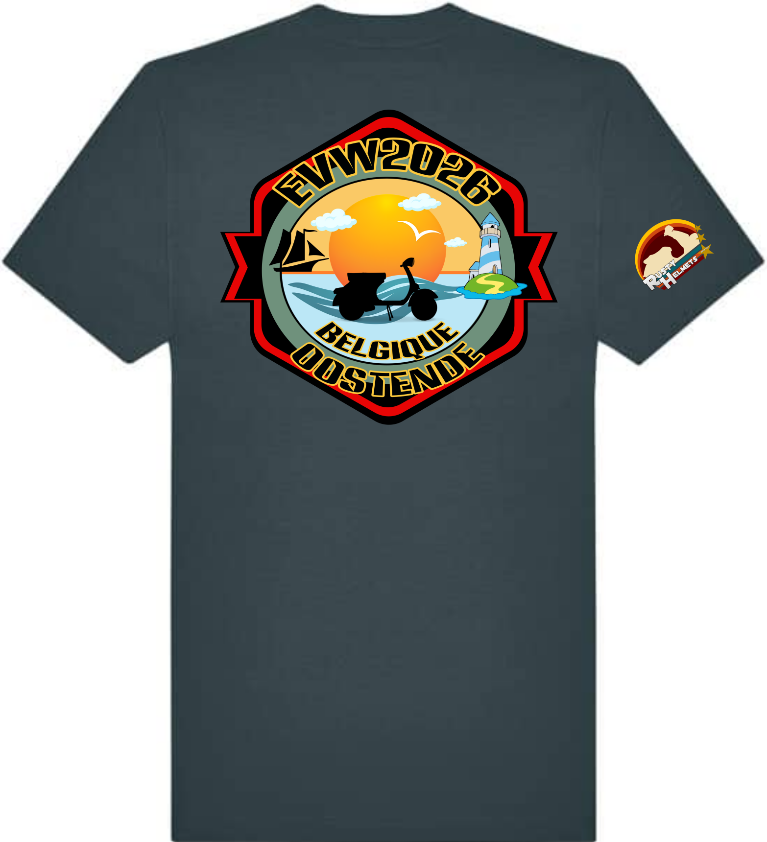 T-Shirt EVW 2026 mit Event-Druck, vorne, hinten und Ärmel, Farbe Petrol