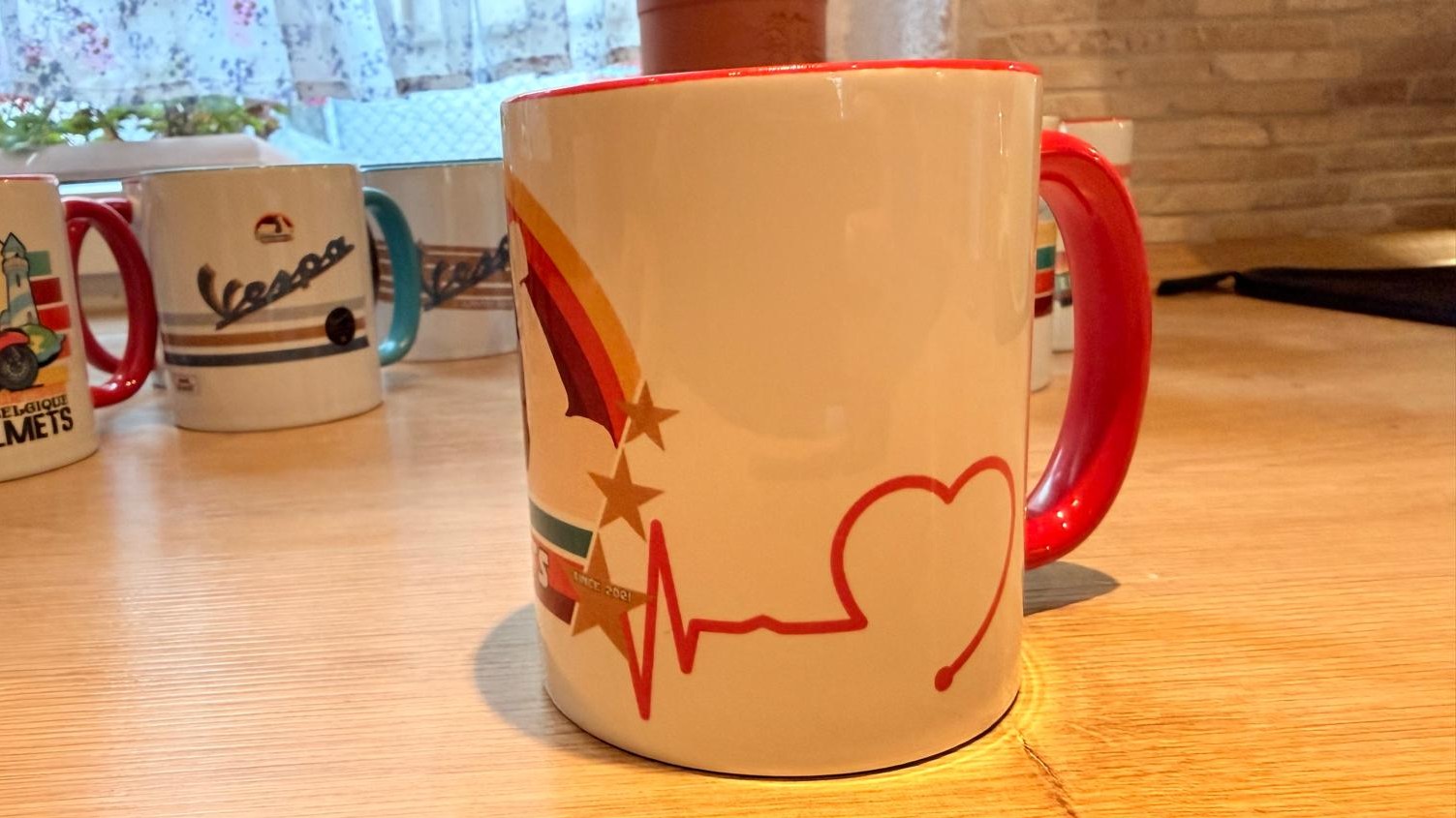 • Keramiktasse mit farbiger Henkel und Innenseite