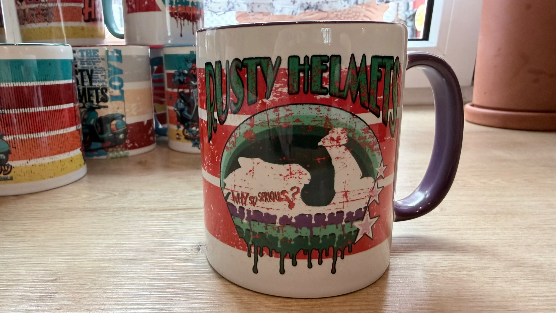 Tasse 330ml - Design auf Wunsch veränderbar - Design Rusty Helmets - JOKER_01