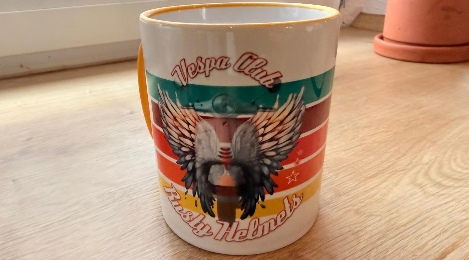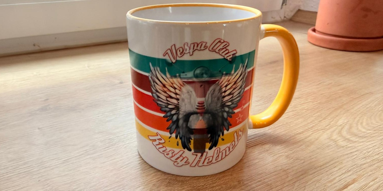 Tasse 330ml - Design auf Wunsch veränderbar - Design Rusty Helmets_Vespa Flügel